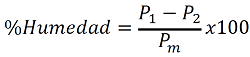 Donde P1 es el peso en gramos de la cápsula con el alimento a analizar, P2 el peso en gramos de la cápsula después del calentamiento y Pm el peso en gramos de la muestra.