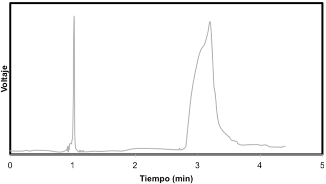 En la figura 2 el cromatograma correspondiente al AL producido al finalizar las 120 h obteniéndose una concentración 16,26% p/p, como consecuencia de la fermentación del almidón de ñame espino con Lactobacillus del brueckii ssp. bulgaricus y el Streptococcus thermophilus.