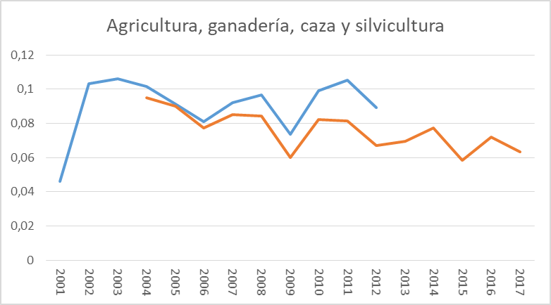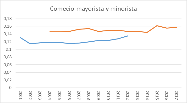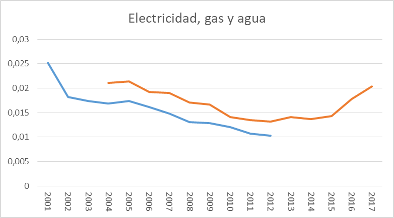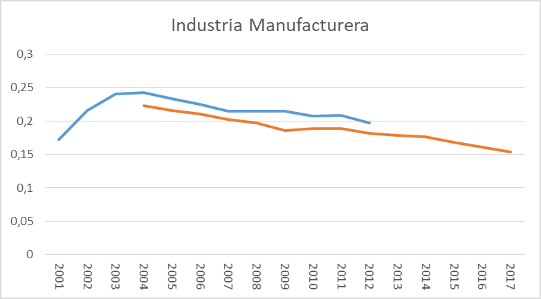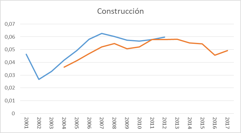 Nota: la línea del período 2001-2012 corresponde a la metodología previa, mientras que la correspondiente a 2004-2017 remite a la nueva estimación.