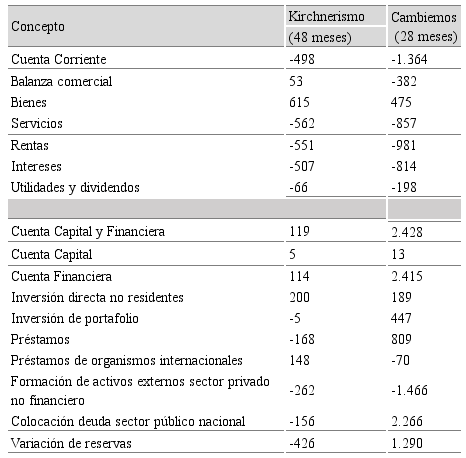Una vez apuntados los carriles principales por los que ha venido discurriendo la política económica de Cambiemos, cabe adentrarse en sus impactos más salientes sobre el balance cambiario (Sección III) y en lo que define la participación de los distintos sectores en el ingreso (Sección IV).