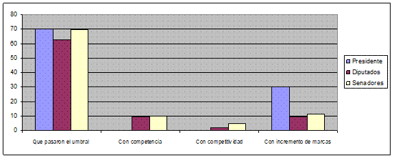 En relación a la reducción cuantitativa de la oferta, en ciertos análisis postelectorales se sostuvo que se había logrado achicar la oferta electoral a nivel presidencial -en tanto que en la elección general de 2015 compitieron tan sólo seis candidatos presidenciales (el número más bajo desde 1983) (Pomares, 2015)- y a nivel legislativo –ya que la cantidad de listas legislativas había decrecido[24]- (Cruz, 2017).