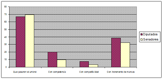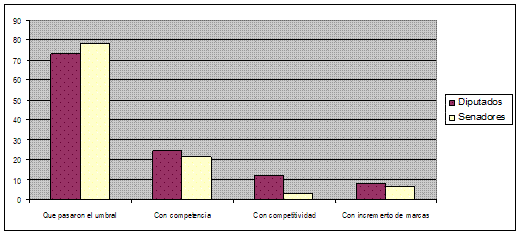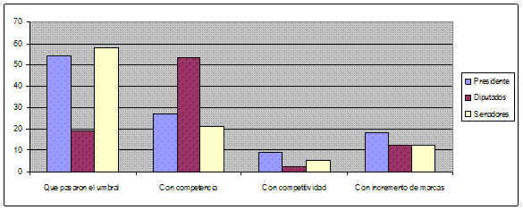 Desde que rige el sistema de PASO, solamente el 25% de las internas presidenciales fueron competidas; el 25,4% a nivel de diputados nacionales y el 15,29% en senadores. En cuanto a la competitividad, a nivel presidencial, sólo el 4,76% de las internas resultaron ser competitivas, en la categoría de diputados nacionales, el 5,37% y para senadores solamente 3,71% de las listas lo fueron.