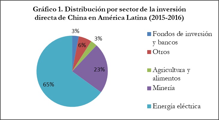 Podemos ver la distribución en porcentajes de las fusiones y adquisiciones chinas en Latinoamérica entre 2015 y 2016 en el gráfico 1: