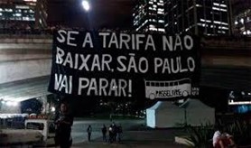 Nós não queremos derrubar ninguém, não estamos metidos em uma disputa partidária ou pela conquista do governo. Nossa disputa é para que se apliquem outras políticas públicas, o que nós queremos é derrubar as injustiças... derrubar a exclusão. (...) nós, como os chilenos, lutamos por uma agenda pontual, eles pela educação gratuita e pública, nós aqui pelo transporte. Nós não vamos à rua como os árabes que iam contra algumas ditaduras, contra o sistema. Nós usamos um método parecido ao dos chilenos, enfrentar todo o Estado em um ponto claro, o transporte, com ações diretas. [Militante do MPL, 18/07/2013] (Preis, 2013: s/p.)