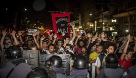 A grande onda de protestos de junho de 2013 iniciou-se com atos contra o aumento da tarifa de ônibus na cidade de São Paulo, organizados pelo MPL-SP, e, em poucos dias, milhares de pessoas saíram às ruas de mais de 300 cidades brasileiras durante mais de um mês[3]. Se somaram à pauta inicial, as mobilizações dos coletivos que resistiam aos impactos sociais e urbanos causados pelos megaeventos esportivos, os indignados contra a corrupção, entre outros. A rápida difusão territorial, a capacidade de mobilizar diferentes setores sociais, e a multiplicidade das pautas são aspectos que diferenciam esse evento das demais manifestações, as quais adquiriram uma dinâmica própria, configurando uma integração contingencial entre o núcleo organizado do MPL e a multidão, sem que houvesse uma direção hierarquizada.