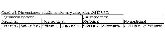 Finalmente, las subdimensiones medicinal y no medicinal, en cada una de las dimensiones, disponen a su vez de dos categorías vinculadas a la conducta regulada. Por una parte, el autocultivo, también denominado en las normativas como “cultivo doméstico” o “cultivo para uso personal”. Es decir, el autoaprovisionamiento de cannabis por parte de los propios consumidores[5]. Por el otro, el consumo. Aunque se encuentran tipificadas distintas conductas asociadas al consumo (por ejemplo, en función del lugar en el que se realiza o de la existencia de concierto para consumarlo), por estar presente en la mayoría de las normas analizadas, aquí se toma en cuenta lo previsto para la figura de “tenencia para uso personal”[6]. De tal modo, con las dimensiones, subdimensiones y categorías descriptas queda conformada la estructura de un índice que permitirá captar las variaciones internacionales en la legislación de las conductas circundantes al uso de cannabis (Cuadro I).