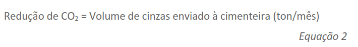 A terceira etapa foi baseada na análise da mitigação dos impactos ambientais ao considerar-se dois aspectos: redução das emissões de CO2 e redução do consumo de água bruta para umectação de cinzas nos pátios internos da usina. A estimativa de redução das emissões levou em consideração que “para cada ton de resíduo de cinzas usada na fabricação do cimento, aproximadamente 1,0 ton de CO2 deixa de ser liberada na atmosfera” (U.S DEPARTMENT OF ENERGY, 2004). Desse modo, os volumes de cinza (ton/mês) da usina termoelétrica que seguiram para a indústria cimenteira no ano de 2016 foram contabilizados e, posteriormente, foi calculada a redução da emissão total desse gás de estufa (Equação 2).