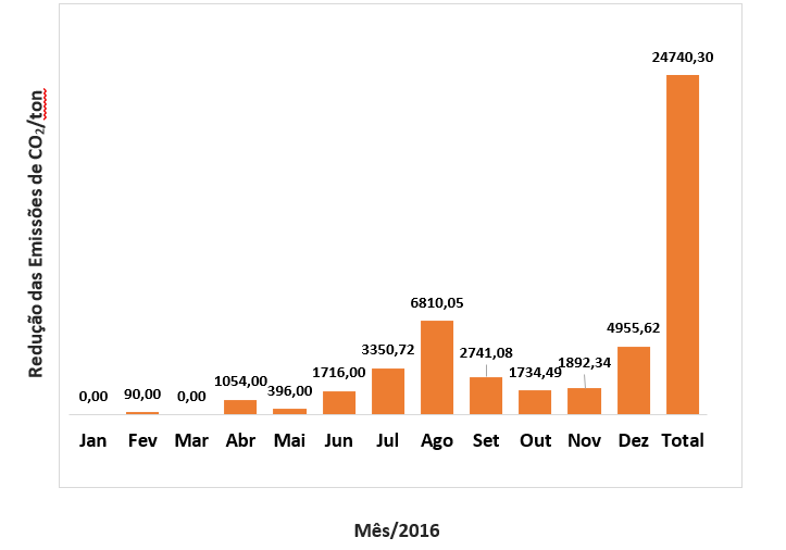 Dadas as suas características, alguns processos industriais apresentam um alto potencial de geração de CO2 e o processo de fabricação do cimento Portland®, por sua vez, é uma grande fonte geradora desse poluente. Segundo o World Business Council for Sustainable Development (2009), a indústria do cimento é responsável por aproximadamente 5% do CO2 de fonte antrópica liberado anualmente na atmosfera. Neville (1982) afirma que o grande vilão da produção de cimento é justamente a produção de clinquer, pois sua produção demanda a extração exacerbada de matérias‐primas e gera grande emissão de CO₂. A utilização de cinzas como insumo na fabricação cimento é de elevada importância e tem-se mostrado bastante viável devido às constantes demandas da área da construção civil no Brasil e no mundo. Outro aspecto bastante significativo é o benefício ambiental de tal reuso, pois essa estratégia reduz a emissão de gases de efeito estufa como o CO2. Ademais, o dito processo facilita as ações e acordos firmados nacional e internacionalmente para minimizar o lançamento de gases que aprisionam calor na atmosfera. O Gráfico 3 mostra a contribuição específica da usina térmica em questão no que toca a redução significativa da emissão de CO2 em 2016.