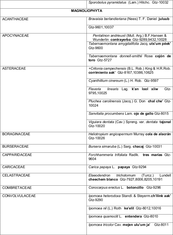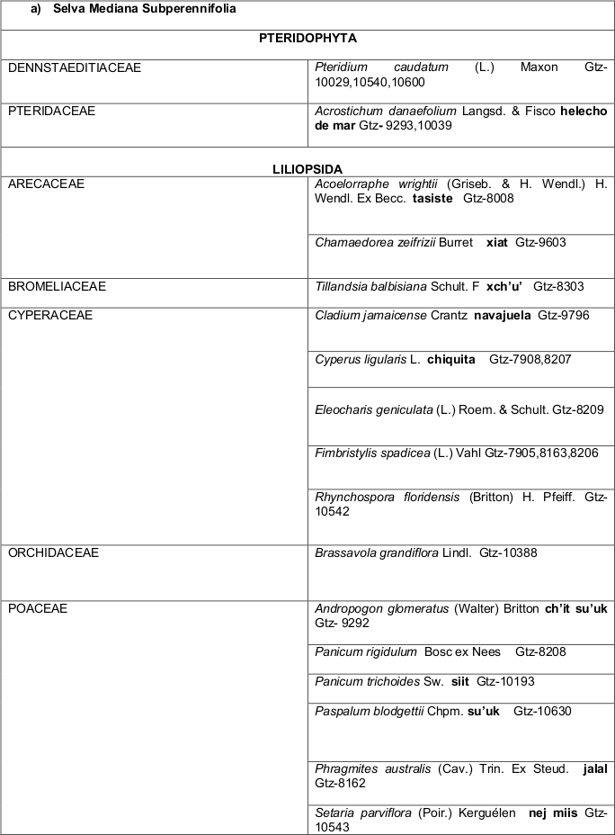 ZAMORA, P.; GARCÍA, G.; FLORES, J.S. y ORTÍZ, J.J. 2008. Estructura y composición florística de la selva mediana subcaducifolia en el sur del estado de Yucatán, México. Polibotánica 26:39-66.