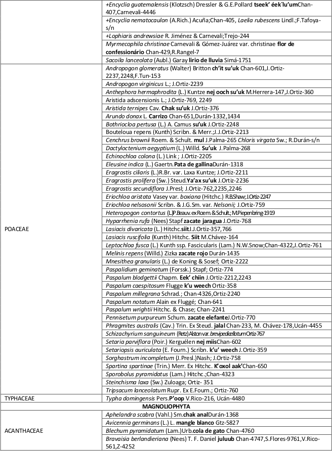 Al Dr. William J. Folan y a Lynda Florey por su constante apoyo, Al Dr. Germán Carnevali y la Biól. Silvia Hernández Aguilar por la información de la base de datos del CICY.