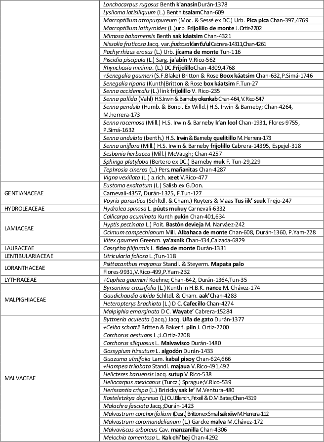 GUTIÉRREZ-BÁEZ, C.; DÍAZ, J.J.; FLORES, J.S.; ZAMORA-CRESCENCIO, P.; DOMÍNGUEZ-CARRASCO, M.R. y VILLEGAS, P. 2011. Estructura y composición florística de la selva mediana subcaducifolia de Nohalal-Sudzal Chico, Tekax, Yucatán, México. Foresta Veracruzana 13 (1): 7-14.