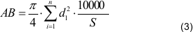 Área basal por hectárea: Es importante conocer el área basal ya que este es un indicador de la densidad del rodal y sirve además para calcular el volumen de los árboles en pie (Klepak, 1983). Con la suma de las áreas basales individuales se obtuvo el área basal por parcela y posteriormente se calculó el área basal ha-1 (Corral-Rivas et al., 2014):