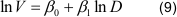 La estimación del volumen se originó de la ecuación 9, sus valores son: ß0= -9.54421356, ß1= 2.74680381, R2= 0.97692972, Error estándar= 0.21959805. Con este modelo logarítmico para la estimación del volumen, se logró obtener un buen ajuste a pesar de ser simple, ya que solo involucra la variable diámetro.