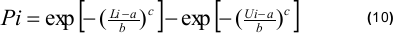 Modelo para distribución diamétrica.Para este estudio se aplicó un modelo que predice la distribución de diámetros basado en una función de distribución Weibull (Aguirre, 1987; Gorgoso y Rojo, 2009; Návar-Cháidez y González-Elizondo, 2009), utilizando la siguiente ecuación (Smalley y Bailey, 1974):