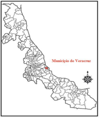 En la figura 1 se observa la localización del municipio de Veracruz que se encuentra en la parte central del Estado, cuyas coordenadas son 19° 06’ y 19° 16’ norte y 96° 07’ y 96° 21’ oeste.