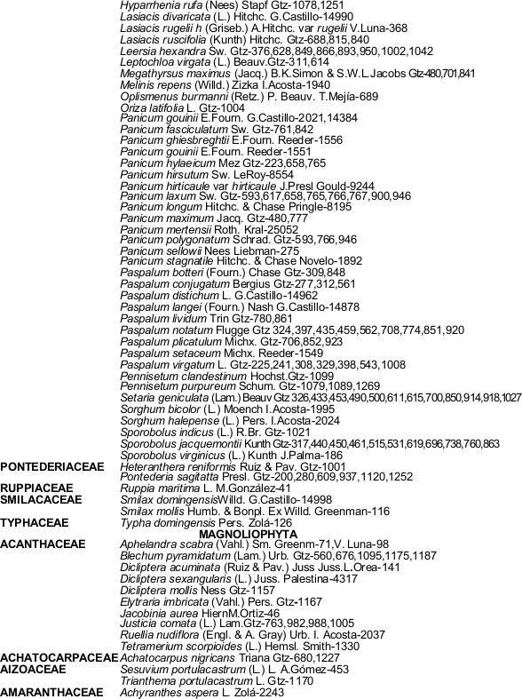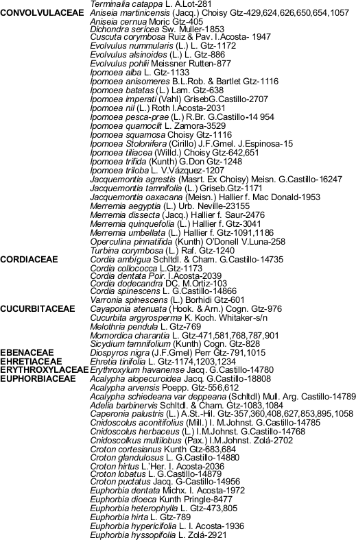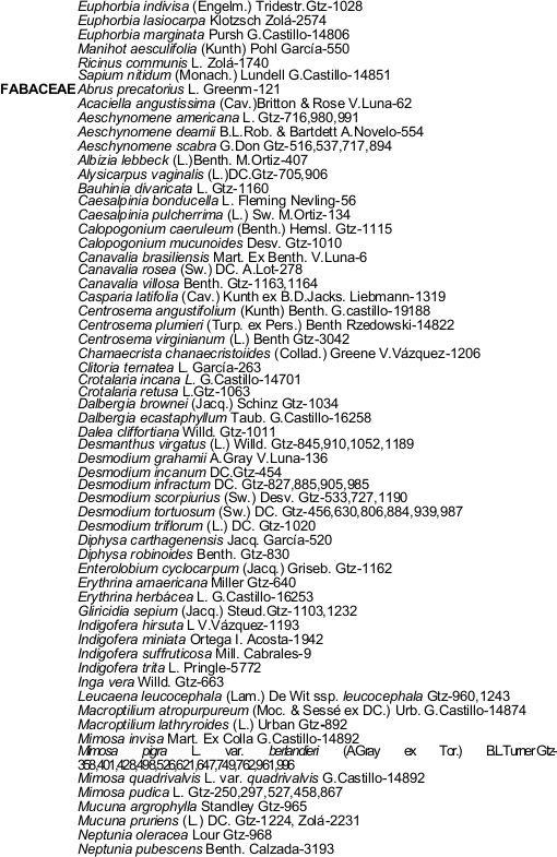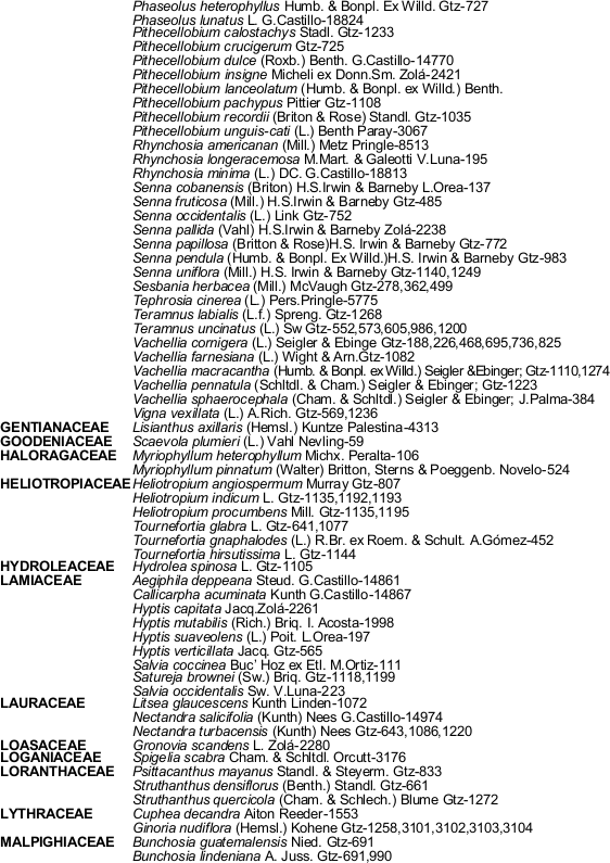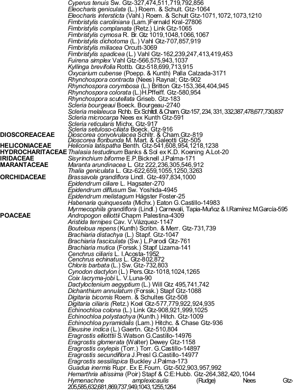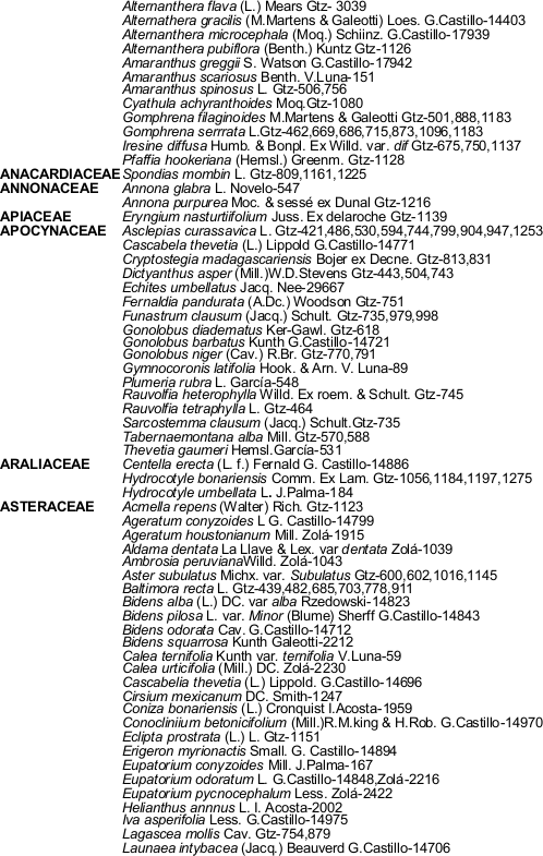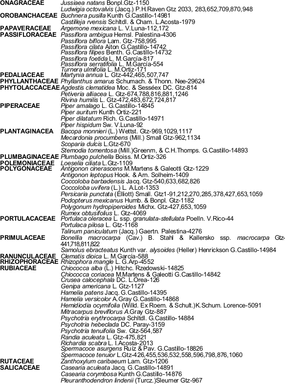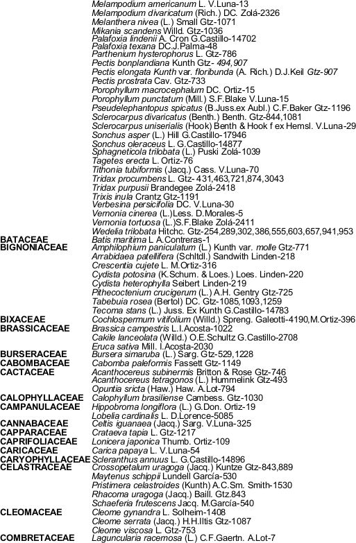 Al Dr. Sergio Avendaño R. por la información de la base de datos del herbario XAL.
