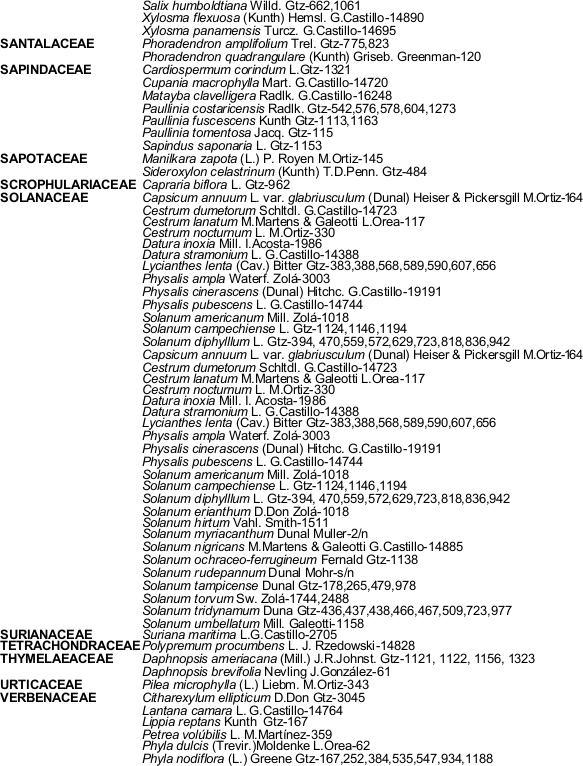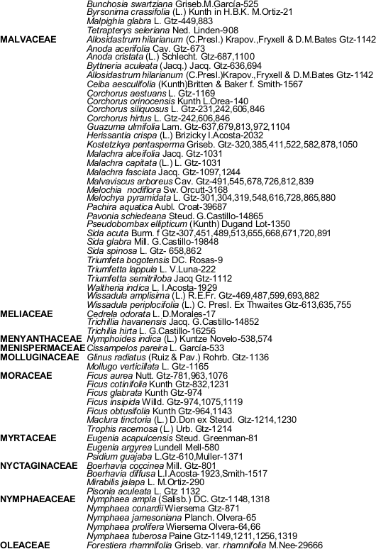 Nota: Los nombres científicos incluyen sus autores, colectores y número de recolecta.