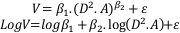Modelos matemáticos para la estimación del volumen de árboles en plantaciones forestales de Gmelina arborea, en la costa de Jalisco. Dónde: V = volumen (m3); D= diámetro normal a la altura de 1.3 (m); A = Altura total (m); βi= Parámetros a ser estimados; ε = Error aleatorio del modelo