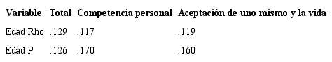 Como se aprecia en la tabla pertinente, no se encontró una asociación entre la edad y el puntaje total o los factores de la escala, por lo que, en la muestra del estudio, no se advierte la existencia de una correlación entre dichas variables.