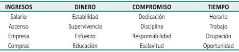 Los elementos que conforman el contenido de las dimensiones culturales del empleo fueron agrupados en las categorías encontradas en las palabras obtenidas en los listados libres, las que se muestran en la Tabla 1.