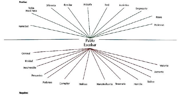 La imagen de Pablo Escobar es neutra en un 77%, por encima de la media negativa de un 42%. Las facetas de Pablo desde un criminal demente hasta la de un filántropo o héroe colombiano se entremezclan en una información que está pasada bajo los géneros periodísticos de opinión -crítica- y reportaje. Respondiendo a los criterios de estos géneros, la imagen de Escobar se ha elaborado a partir de una serie de conceptos expuestos a continuación: