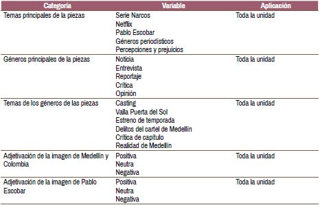 A continuación, se examina la caracterización general de la información, en el que se hace un estudio general acerca de los géneros; las temáticas; la imagen de Pablo Escobar; y la imagen de Medellín y Colombia durante el cubrimiento periodístico de la serie Narcos.