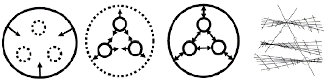 A grandes rasgos es posible afirmar que en la antropología han existido cuatro grandes modelos mereológicos que "asisten" a los investigadores postulando: 1. El todo ordena las partes, por lo que este existe como un marco que trasciende sus componentes: holismo. 2. Las partes priman ante el todo, por lo que poseen autonomía: individualismo. 3. El todo y las partes se encuentran en retroalimentación: integracionismo. 4. No existe ni el todo ni las partes, sino redes de relaciones que ensamblan contingentemente en las cosas: relacionismo (Ver Figura 1.) (Perdomo-Marín, 2019, 2020a, 2021).