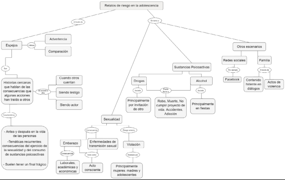 Tanto padres como adolescentes se acercan a estas historias en las que se observa un valor pedagógico enfocado en mostrar los escenarios de riesgo y sus consecuencias. Así, el riesgo se hace historia para hablar de las prácticas o las amenazas que se derivan de él. Las conductas de riesgo dejan de transitar en el plano estadístico para darle una serie de matices cotidianos, las historias dan cuenta de valores tradicionales para las familias, escenifican temores pasados que pueden ser reeditados en el escenario actual con el adolescente o alterar el tránsito del futuro.