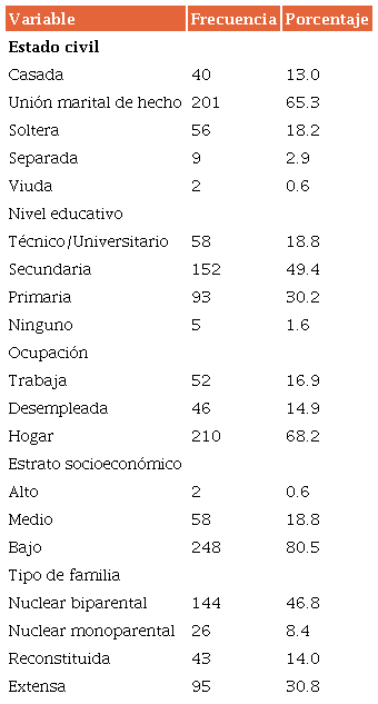 La muestra final fue de 308 mujeres madres y/o cuidadoras. La caracterización de la muestra se presenta en la siguiente tabla.
