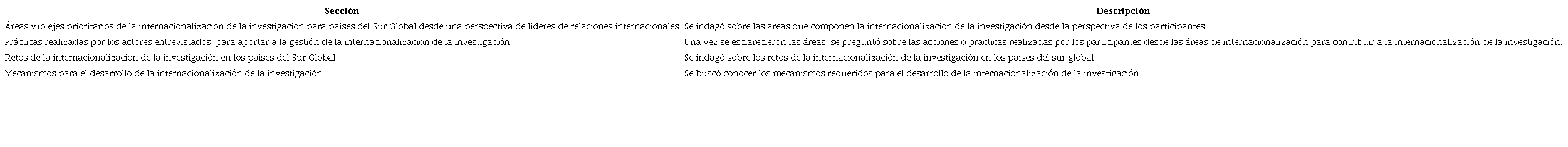 Asimismo, se busca asociar prácticas realizadas por los actores entrevistados, para aportar a la gestión de la internacionalización de la investigación. Por otra parte, se caracterizaron los retos de la internacionalización de la investigación con base en la perspectiva de los actores y, por último, se realizaron sugerencias que permitan el desarrollo de la internacionalización de la investigación, a partir de las diferentes dinámicas y experiencias de los actores involucrados. Lo anterior, en aras de presentar implicaciones que aporten al desarrollo de la internacionalización de la investigación en otros países de América Latina y el Sur Global.