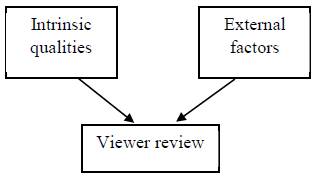 The production, distribution and exhibition of a film represent a complex, non-linear process involving a wide network of organizations and individuals. Therefore, its analysis requires a model that considers the different variables and forces involved in the making of a film. Thus, the model proposed by Hennig-Thurau et al. (2006) has been considered. Figure 1 shows the two types of variables considered in this model. On the one hand, there are intrinsic qualities, i.e., features or characteristics of the film (plot, characters, director, soundtrack, etc.) and, on the other hand, external factors (expert reviews, previous online comments, etc.).