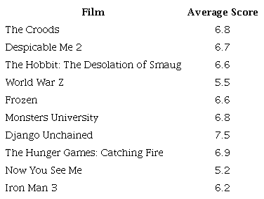Ginsburgh, V., & Weyers, S. (1999). On the perceived quality of movies. Journal of Cultural Economics, 23(4), 269-283.