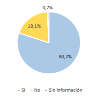 Según la información del Censo de Habitantes de Calle del año 2017, la gran mayoría de los adult os mayores manifestó tener conocimiento sobre los programas estatales para dicha población (Figura 4). La misma tendencia se observó en otros estudios, como el realizado por la Secretaría Distrital de Integración Social en 2014, que consultó "parches"6 y "cambuches"7, y reveló que el 69 % de los mayores habitantes de calle conoce la existencia de los servicios ofrecidos por la Secretaría Distrital de Integración Social. Este conocimiento fue confirmado en las entrevistas realizadas, en las que los participantes mencionaron con frecuencia los servicios de la Secretaría Distrital de Integración Social (SDIS) y los programas que reciben por medio del Sistema de Identificación de Potenciales Beneficiarios de Programas Sociales (SISBEN). Aunque hay niveles desiguales de conocimiento entre las personas entrevistadas, subrayan casos en los que se cuenta con alta cantidad de información con respecto al tipo de servicios ofrecidos y sus condiciones, así como los programas especiales que existen según rangos etarios.