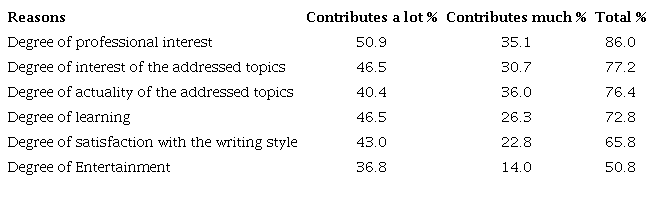 If we refer to the writing style, 43.0% (n = 49) say that they like it a lot; 27.2% (n = 31) are neutral; 22.8% (n = 26) like it a lot; 4.4% (n = 5) like it a little; and 2.6% (n = 3) like it very little.