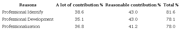 Regarding professional identity, 43.0% (n = 49) think it has contributed a lot; 38.6% (n = 44), much; 12.3% (n = 14) make a neutral assessment; 3.5% (n = 4), little; and 2.6% (n = 3), something.