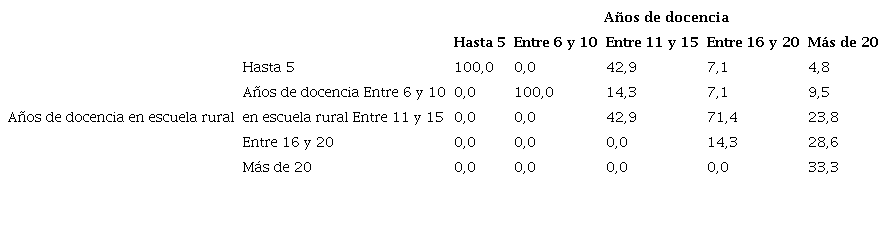 A tenor de los datos, se constata que los encuestados que comienzan su labor docente en escuelas rurales permanecen en ellas por decisión propia, tal como se muestra en la tabla 1.