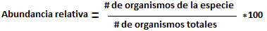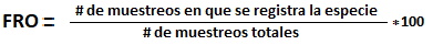 Se determinó de acuerdo a Jiménez (1991), frecuencia relativa de ocurrencia, para ello se calculó de forma individual por especie y por grupo siguiendo los criterios de Aranda et al. (1095) para conocer la representatividad de las especies a lo largo del año.