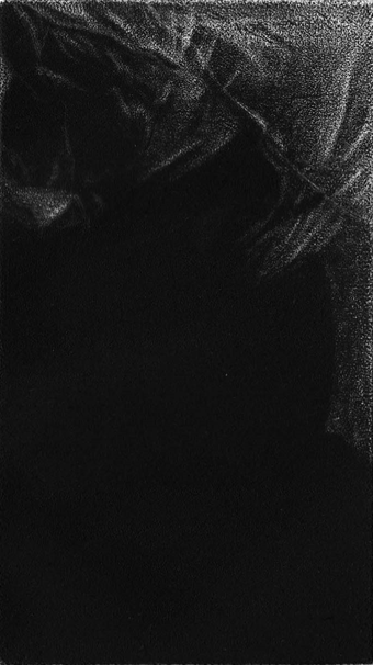 Proceso relativo(litografía) yTha (mezzotinta) son obras realizadas por medio de dos técnicas del grabado. Si bien ambas suponen complejidades en su proceso, su construcción, como imagen y proceso, continúa siendo la exploración misma de la mancha y del espacio vacío… como elaboración recurrente en la ambigüedad de su significado.