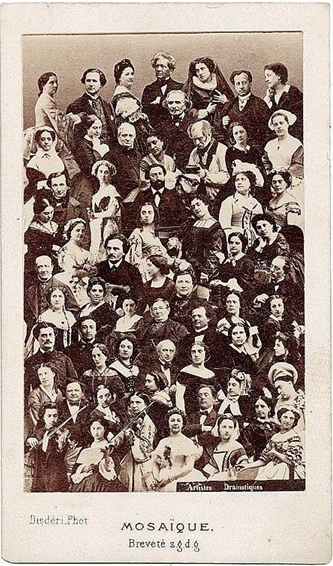 El álbum Sgt. Pepper’s Lonely Hearts Club Band de 1967 que llegó en simultáneo al verano del amor hippie sentaba, nuevamente, precedentes sobre la portada de los LP en cuestiones de sincretismo de música y diseño. De hecho, el programa visual de la carátula merecería ser estudiado desde metodologías panofskianas (Panofsky, 1972) –debido al alcance del tema, tipo iconográfico, esquema compositivo, tema de encuadre, obsérvense las Figuras 3 y 4–, que descubren una posible influencia de Eugène Disdèri (1819-1889) en su obra Mosaic d’ artistes (1865), en donde observamos una tarjeta postal nutrida de importantes personajes; un resultado similar obtuvieron The Beatles cuando incluyeron en la imagen a ídolos populares como Marilyn Monroe, Charles Chaplin, Albert Einstein, Karlheinz Stockhausen, Oscar Wilde, Mae West, etc. Además, por primera vez, se incluían las letras de las canciones en un álbum pop y cada una de estos temas sonaba de manera concatenada con el siguiente sin irrupciones.