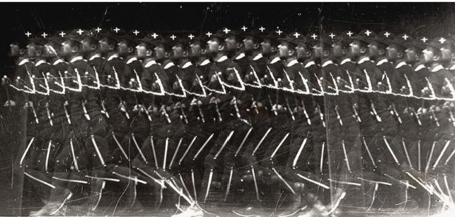 Cabe aclarar que de ser cierta dicha inferencia, el hilo que los une apunta en dos direcciones más. Nos referimos a la cronofotografía y a los conceptos apariencia y aparición. De origen científico, la cronofotografía capturaba el movimiento en una secuencia de imágenes grabados en pequeños marcos (ver Figuras 12 y 13). Predecesor del cine, la cronofotografía, apropiada por las vanguardias, se usó para detener o retrasar el tiempo; dicho de otra manera, para descomponerlo en factores. En 1912 Duchamp pintó Desnudo bajando la escalera, clara alusión no solo a los experimentos de Étienne-Jules Marey -inventor- sino también al movimiento de nuestra mirada que, de imagen en imagen, persigue el lugar del referente (McManus, 2008).