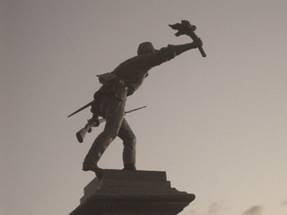 El héroe representado no se ajustó al gusto europeizante de la obra de Aristide Croisy10 (VerFigura 4) ya que pintó al héroe en una posición débil, propiamente capturó el momento en que Juan Santamaría entregó su vida.