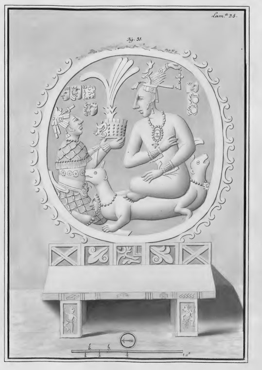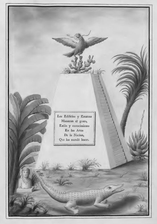 las artes antiguas del país de que tratamos, con mucha pretensión, la contemplan como tierra nueva, […] y así carece de posibilidad que […] halla podido parir o producir algo del ingenio humano. Este continente es contemporáneo al que llaman antonomásticamente el antiguo [y mi prueba son] los monumentos, cuales por sus construcciones originales y su grande ancianidad son testigos […] y hacen patente que había en ellos unos imperios de mucha extensión, población y poder […]. Los viajeros forasteros que han llegado de la Europa, con el intento de recorrer las particularidades dignas de la historia de este gran continente, al juzgarlo, [...] se me figura que hablan de otra tierra […] pues la desfiguran de tal manera […], que apenas es conocible (Dupaix 1831, pp. 319-320).