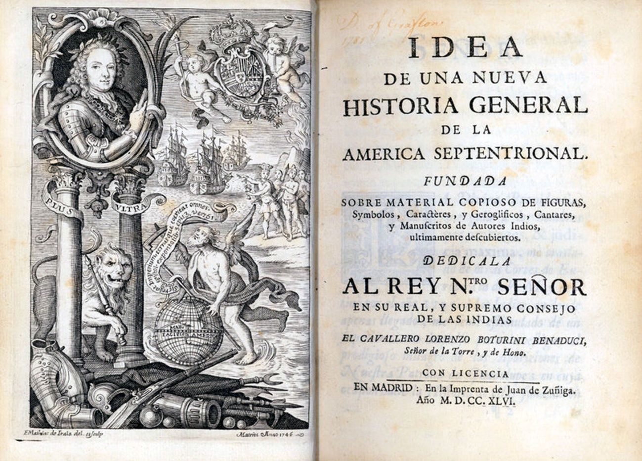 Lorenzo Boturini llegó a la Nueva España en 1736 y allí vivió nueve años. Se hizo de documentos y mapas que en principio le permitieran documentar la aparición de la Virgen de Guadalupe, pero sus intenciones fueron más allá. Escribió Idea de una nueva historia general de la América septentrional en la que incluyó el Catálogo del museo Indiano, para representar la historia de la Nueva España por regiones y culturas mediante su colección. Véase la Figura 3.
