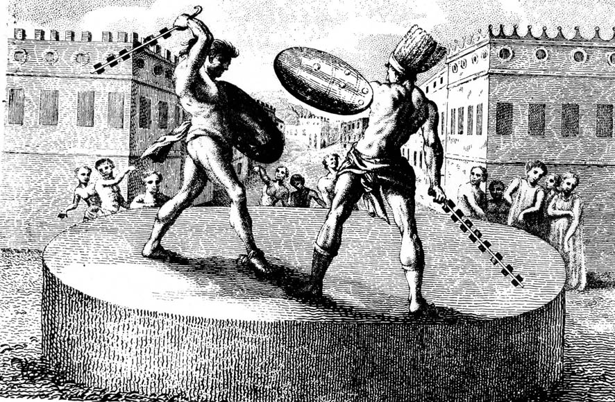 Los palacios de los reyes y principales eran sumamente magníficos […]. Peleaban a pie, porque no conocieron los caballos […]. En vez de espadas usaban macanas de madera, con navajas de pedernal […] y se servían de rodelas para resguardarse […]. Para hacerse fuertes contra los enemigos, aprovechábanse de cerros naturales hechos a mano, como de fortalezas o castillos, teniendo a gran honra morir en la guerra. Se comunicaban con los ausentes, no por medio de letras, sino de figuras de animales pintadas en ciertos papeles, a imitación de los egipcios (Cervántes, 1857, pp. 291-292).