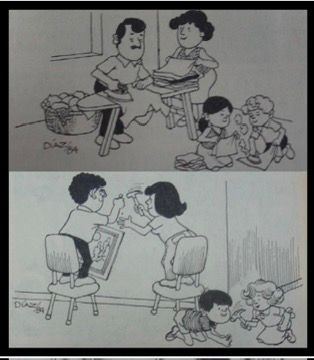 Hacia mediados de la década de 1980, el discurso sobre los roles de género, en las publicaciones de la ADC, había adquirido un tono más igualitario. Se destacaba la necesidad de que, en el proceso de crianza, tanto las niñas como los niños adquirieran conocimientos y habilidades independientemente de su género. Esta directriz estaba vinculada a la visión de la sociedad del futuro y a la manera en que se imaginaba dicha sociedad, visualizando familias nucleares formadas por parejas heterosexuales con mayor estabilidad. Como parte de la estrategia didáctica de la publicación, se incluían varias imágenes alusivas, como las Figuras 1, 2 y 3 que se presentan a continuación.