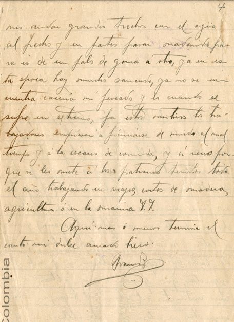 La carta firmada por Franco Z. carece de la primera página y estaba en posesión de la familia Rivera. Podría deducirse, sin problema, que se trata de una carta personal remitida por Franco a su amigo José Eustasio, en la que le reporta minucias útiles para la escritura de La Vorágine. Sin embargo, llama la atención la despedida, que transcribo acá completa: “Aquí más o menos termina el canto mi dulce amado bien”. ¿Tenían Rivera y Franco más que una amistad? ¿Sus años de convivencia fueron años de romance? No hay forma de corroborar esta hipótesis, hasta ahora, porque las cartas personales de Rivera son de difícil acceso en los archivos privados y han sido saqueadas de los públicos. En su biografía, Eduardo Neale Silva no da pistas al respecto, aunque sostiene que no reproduce la totalidad de las cartas que cita por petición expresa de la familia.
