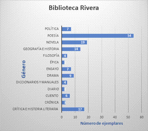 He organizado el contenido de la colección en once categorías que permiten hacerse una idea de los gustos lectores de Rivera, como se puede apreciar en el siguiente esquema: