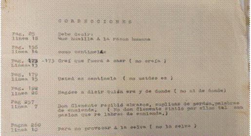 Fe de erratas. Mecanoscrito encontrado entre las páginas de un ejemplar de La Vorágine, 1928