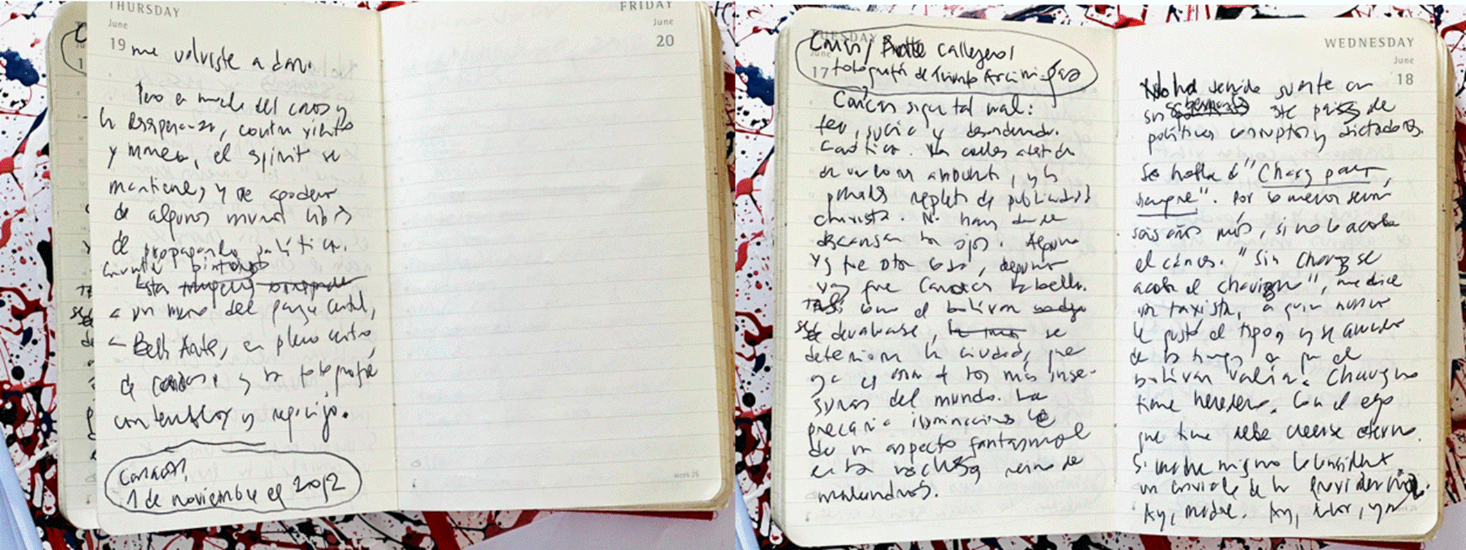 Llegamos a Pamplona un 19 de junio. Ya era casi un adolescente. Al día siguiente salí a recorrer las calles. Me perdí, pero pude volver porque sabía que mi casa estaba detrás del cementerio. Me compré una libreta sin rayas en la tipografía Duarte y en esa libreta empecé a escribir. Todo pasó ese primer día. Después encontré una nueva biblioteca municipal.