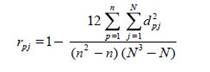 Donde n es el número de sujetos; N, el número de aspectos por considerar; y rpj , la distancia entre los rangos de cada aspecto.